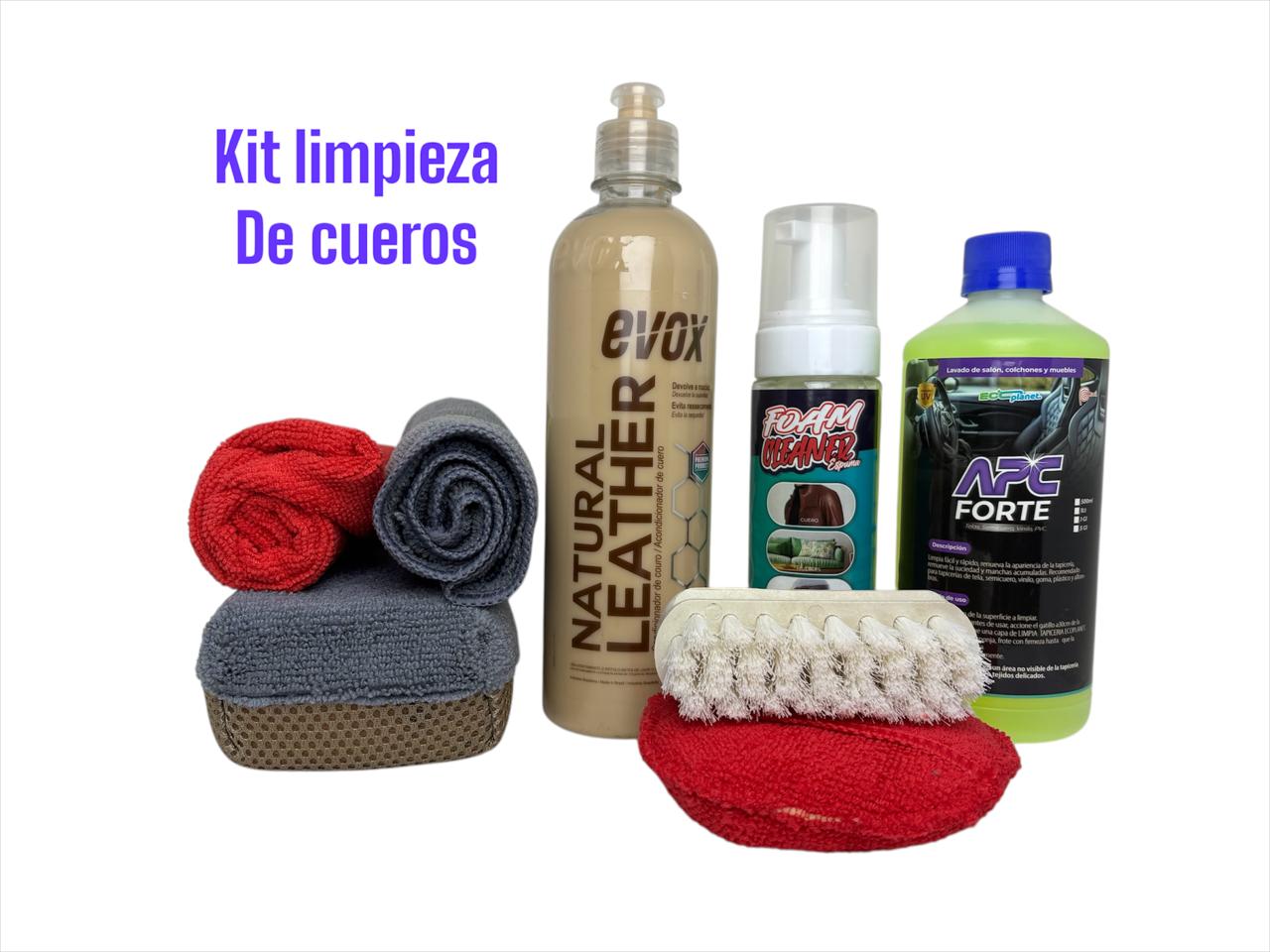 Kit de limpieza de cueros y protección Incluye 2 paños de microfibra suaves 1 hidratante de cuero de 500 ML 1 apc de 500 ML concentrado 1 cepillo suave